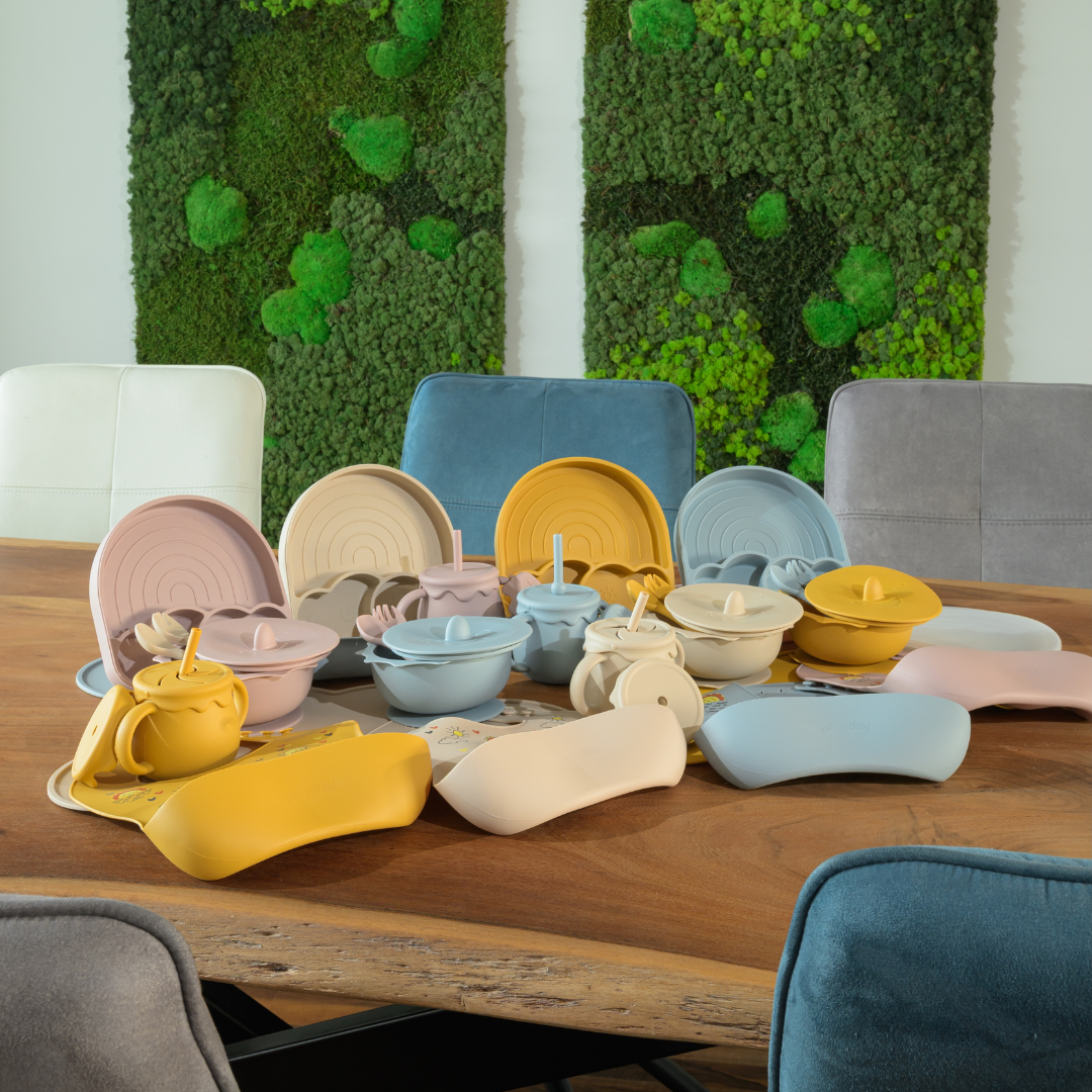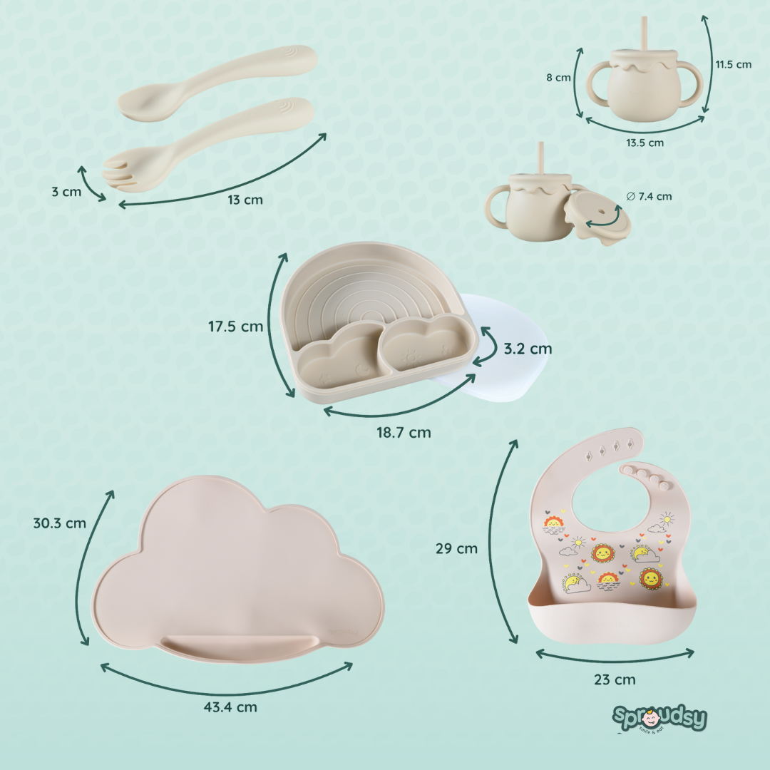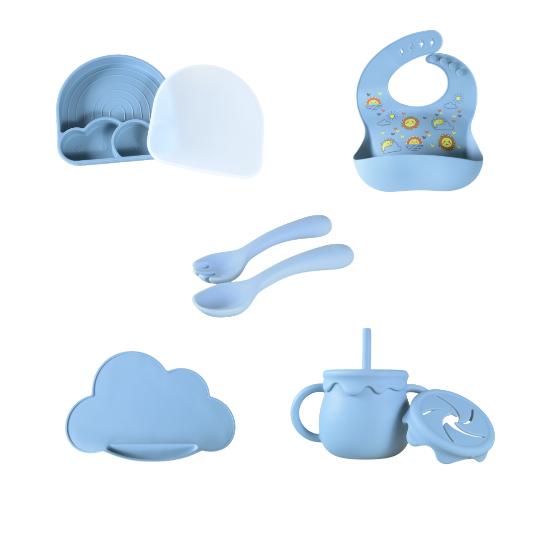 Stap binnen in een wereld vol zonnetjes, wolkjes en eindeloze verbeelding – dat is de magie van onze Clouds-lijn. Het regenboog-bordje met deksel houdt hapjes gescheiden én vers, terwijl het luchtige bestek perfect past in kleine handjes.