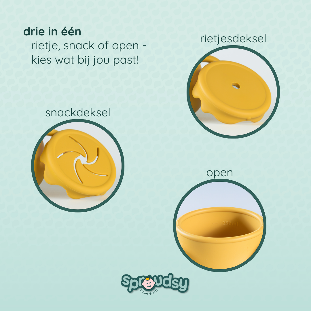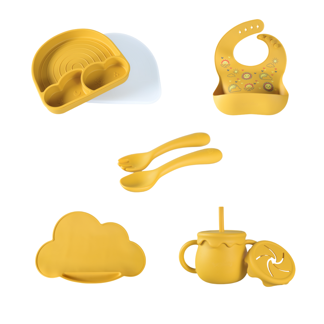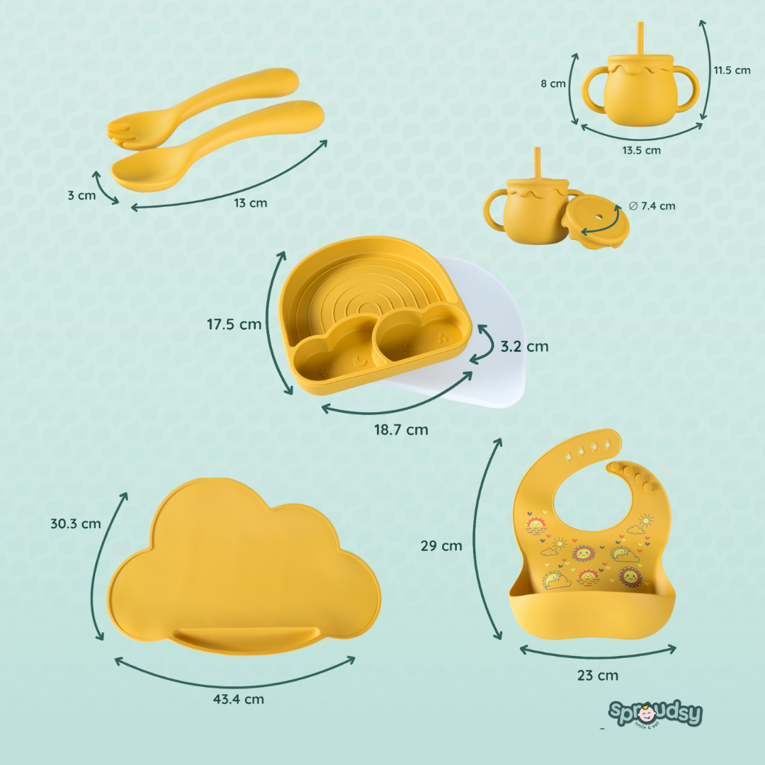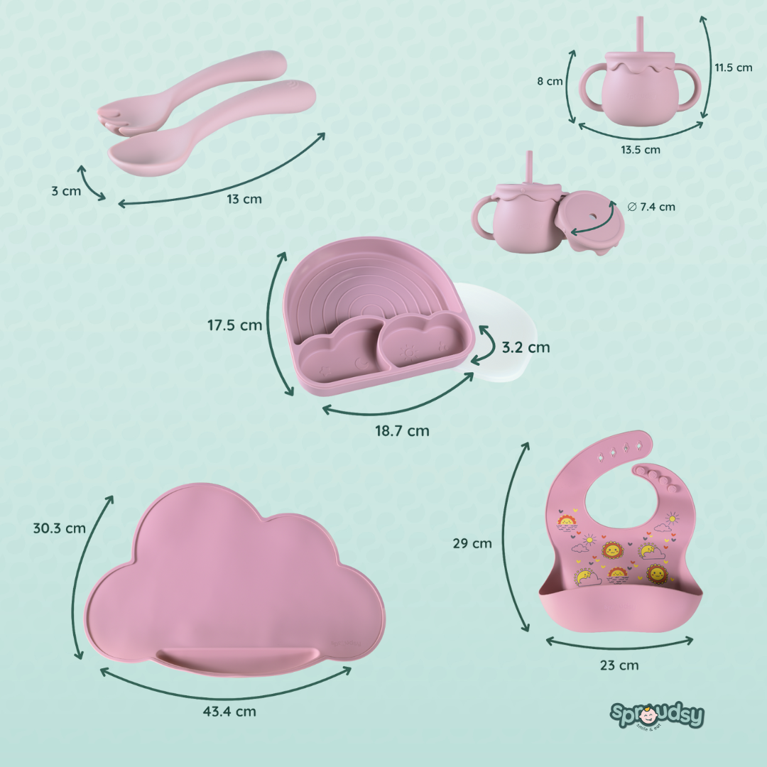 Stap binnen in een wereld vol zonnetjes, wolkjes en eindeloze verbeelding – dat is de magie van onze Clouds-lijn. Het regenboog-bordje met deksel houdt hapjes gescheiden én vers, terwijl het luchtige bestek perfect past in kleine handjes.