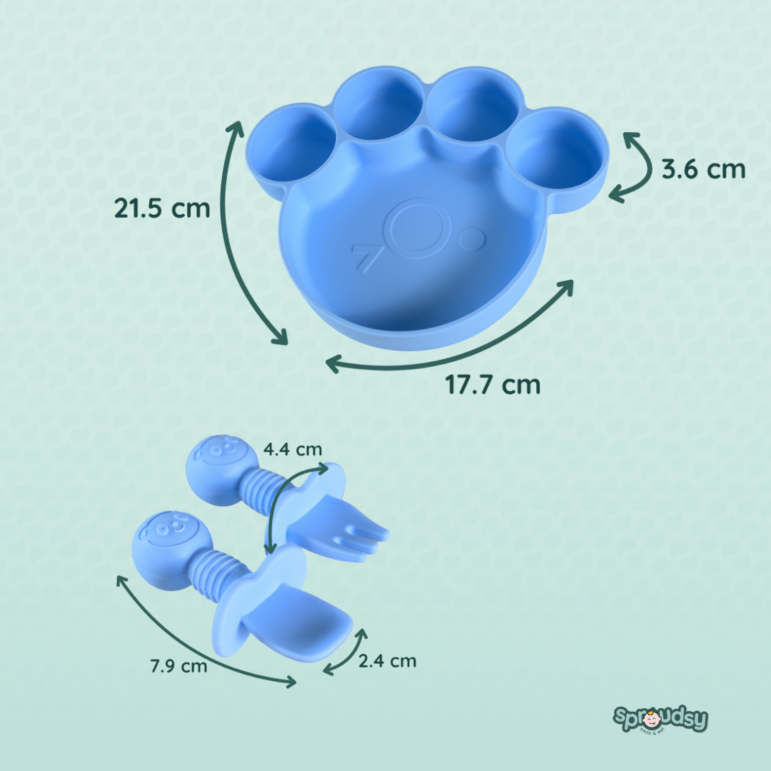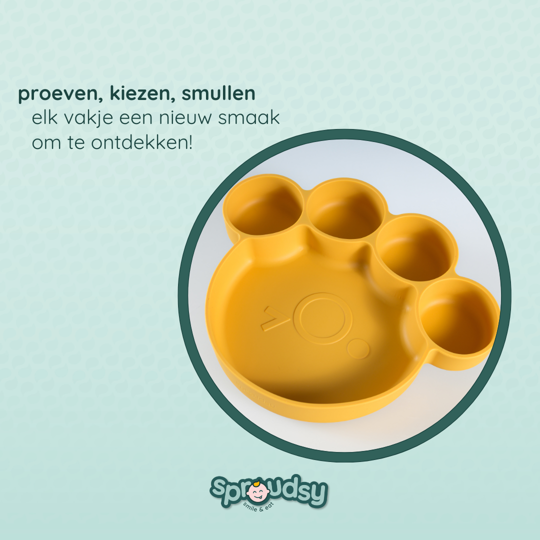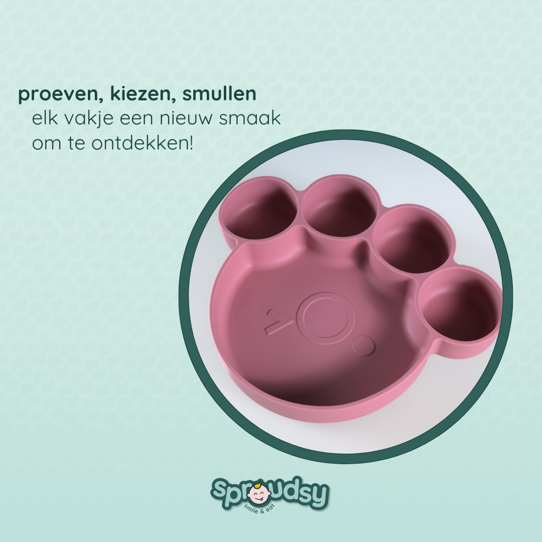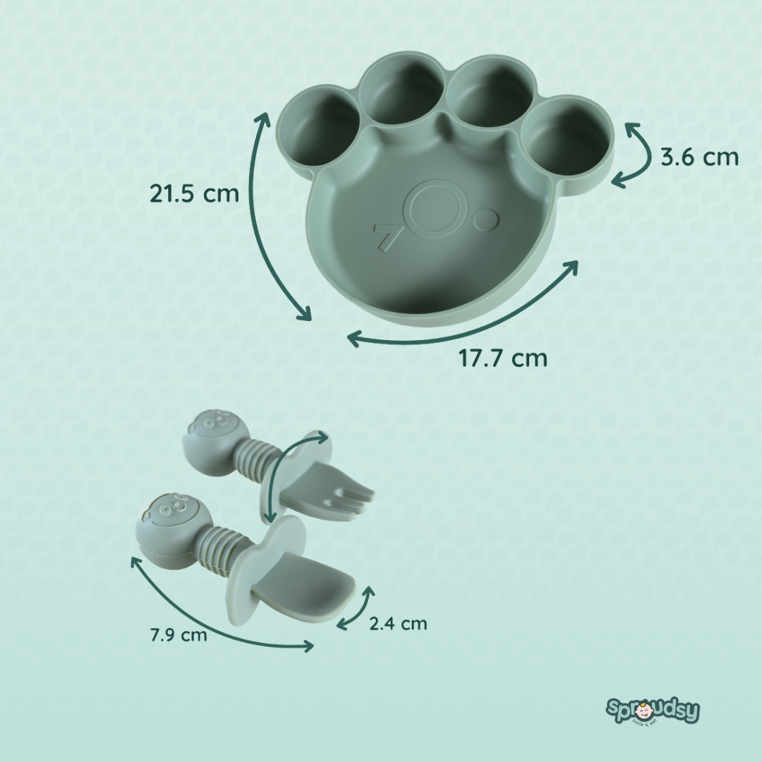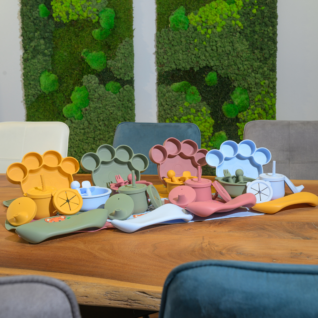 Van de eerste hapjes tot echte berenhonger: met onze Teddy Bear-lijn wordt elke maaltijd een knus avontuur. Het bord in pootjesvorm, het kommetje met oortjes en het bestek met schattige berengezichtjes maken eten leuk én herkenbaar.